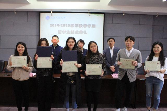 1月4日上午,国际文化交流学院2019-2020学年秋季学期留学生结业典礼在国际文化交流学院会议室举行。国际文化交流学院领导班子、教师代表及50余名留学生参加了本次结业典礼。典礼由国际文化交流学院副院长祁锴主持。