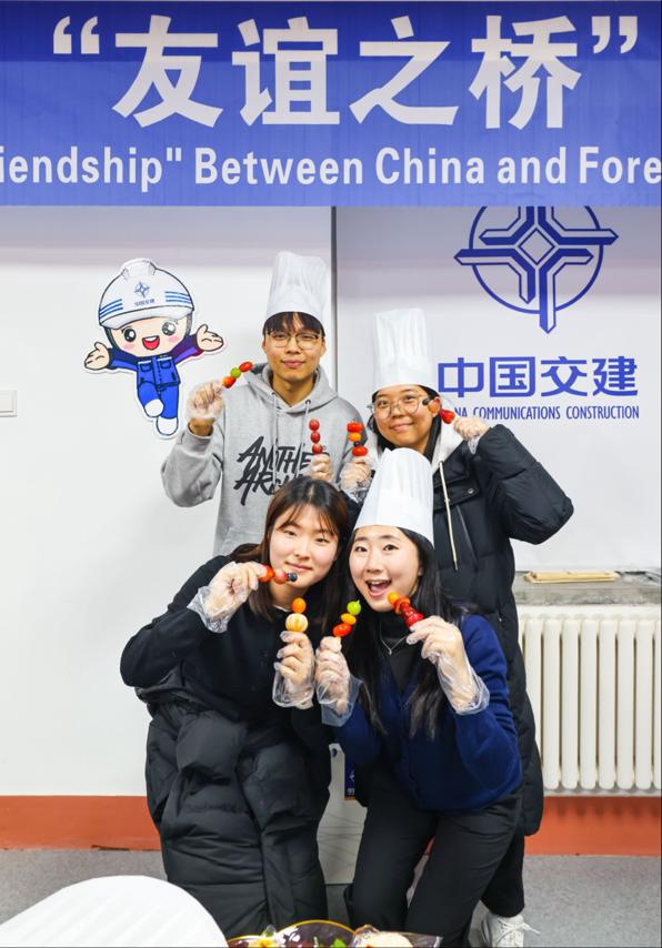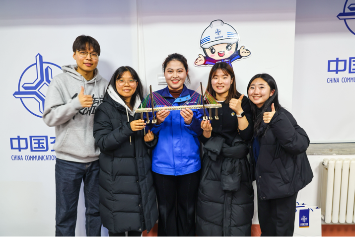 动手搭建,梦想的桥梁在心中生根。留学生们与中国工程师共同搭建象征友谊的“大桥模型”并写下自己的祝福。