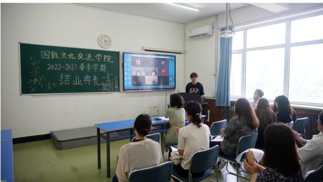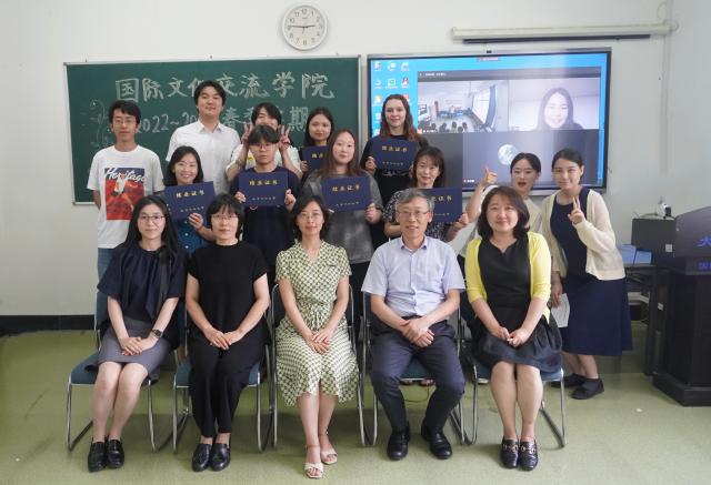 7月5日,国际文化交流学院举行2022-2023学年春季学期结业典礼,典礼采取线上、线下相结合的方式。学院领导班子成员、任课教师、学生工作者出席典礼,16名留学生参加了典礼。典礼由国际文化交流学院副院长刘俊民主持。