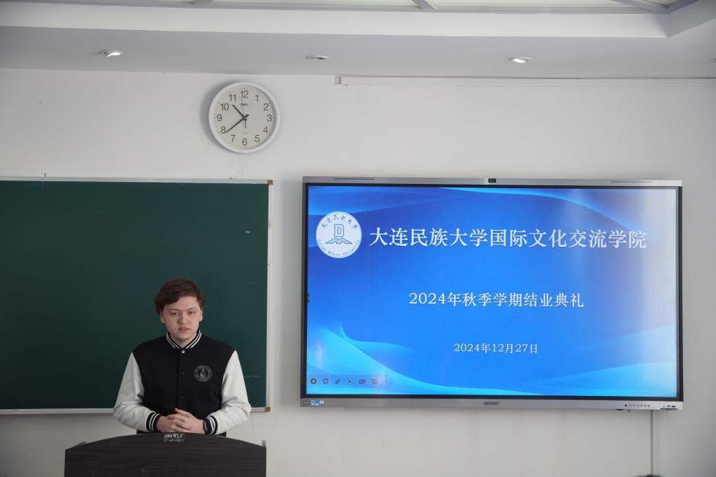 12月27日,国际文化交流学院举行2024年秋季学期结业典礼,学院领导班子成员、任课教师出席典礼,14名留学生参加了典礼。典礼由国际文化交流学院副院长刘俊民主持。