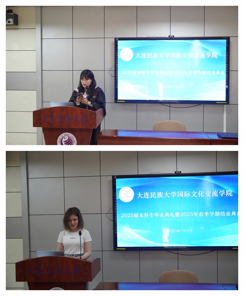 2025年7月4日,国际文化交流学院隆重举行2025届本科生毕业典礼暨2025年春季学期结业典礼。学院领导班子、任课教师、学生家长以及留学科工作人员齐聚一堂,共同见证26名留学生人生中这一重要时刻。此次典礼由国际文化交流学院副院长刘俊民担任主持。