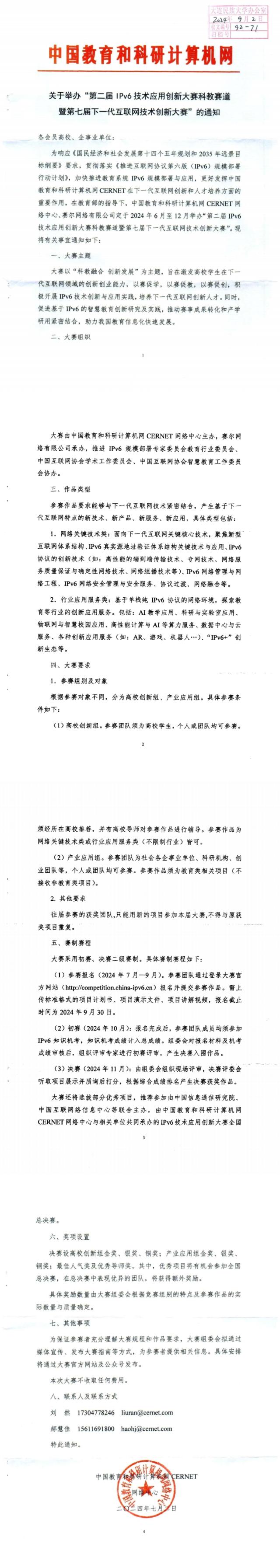 关于举办“第二届 IPv6 技术应用创新大赛科教赛道暨第七届下一代互联网技术创新大赛”的通知