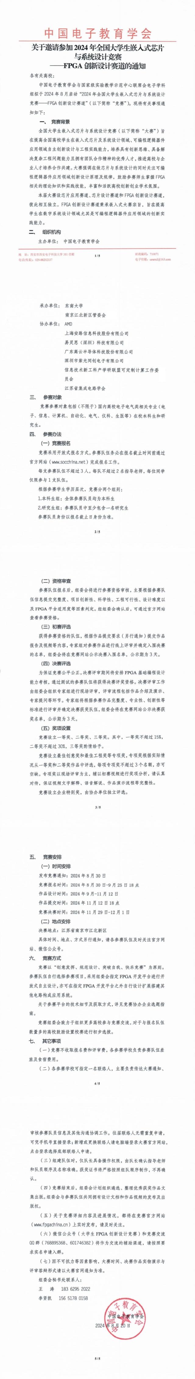 关于举办“2024年全国大学生嵌入式芯片与系统设计竞赛-FPGA创新设计赛道”的通知