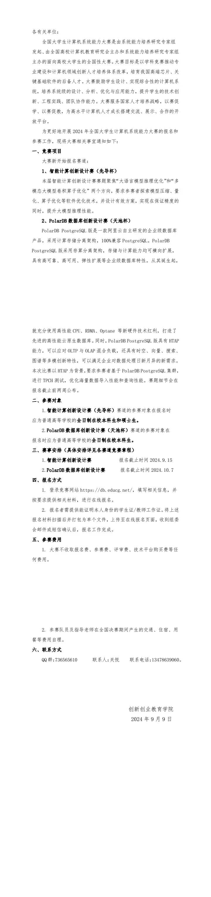 关于组织参加2024年全国大学生计算机系统能力大赛补充通知