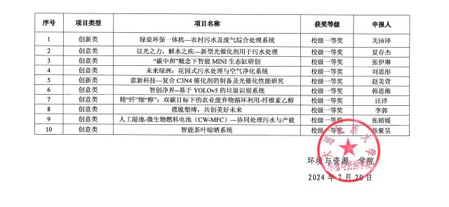 2024年辽宁省普通高等学校绿意杯节能环保大学生科技创新大赛校赛成绩公示