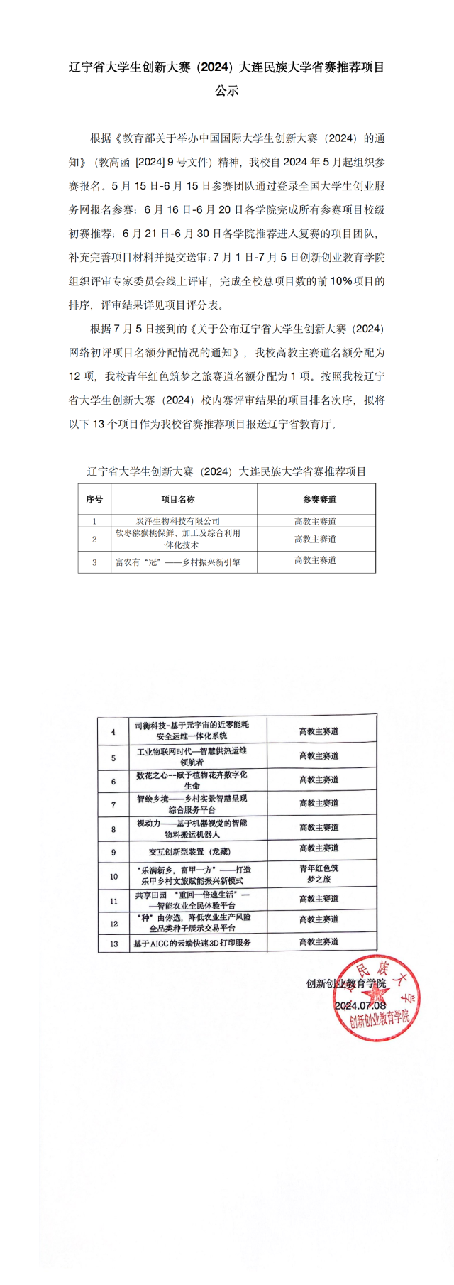 辽宁省大学生创新大赛(2024)欧冠官方网站省赛推荐项目公示