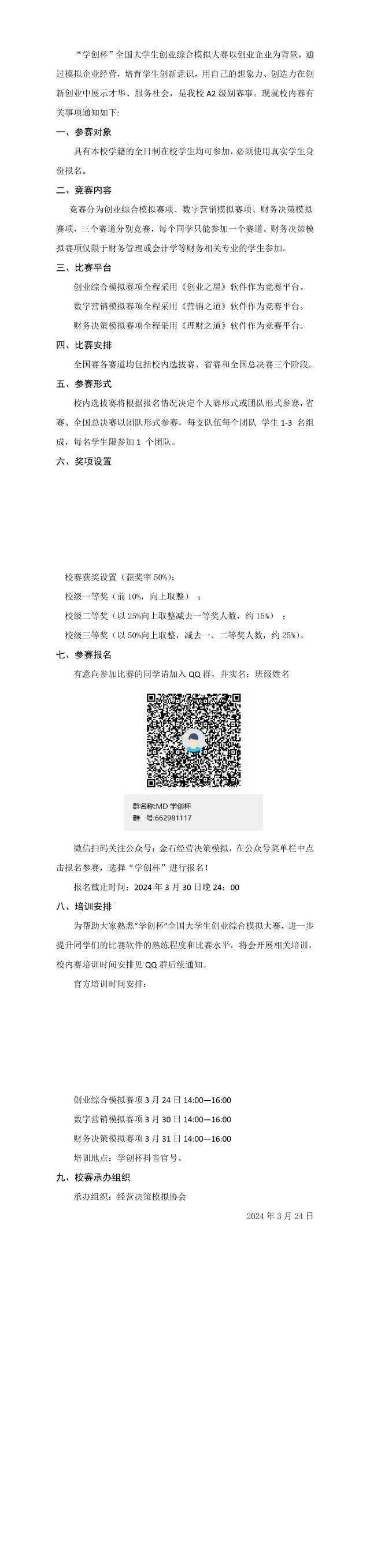 关于举办2024年“学创杯”全国大学生创业综合模拟大赛的通知