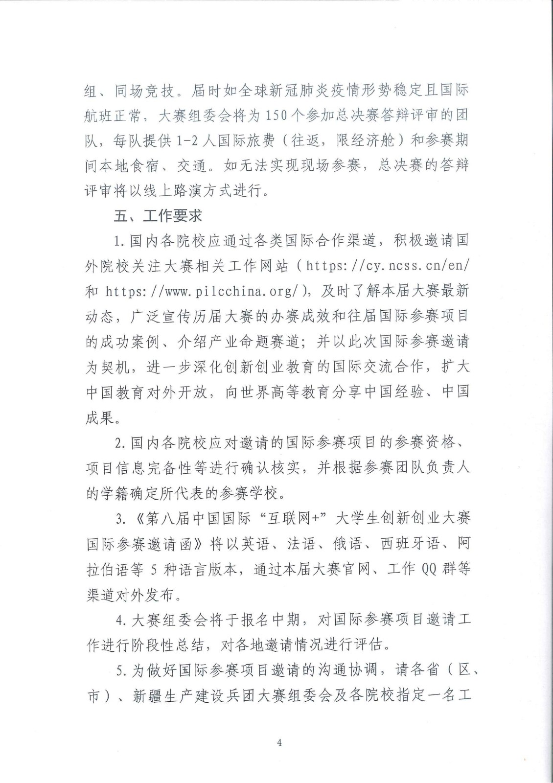 关于做好第八届中国国际“互联网+”大学生 创新创业大赛国际项目参赛邀请的通知