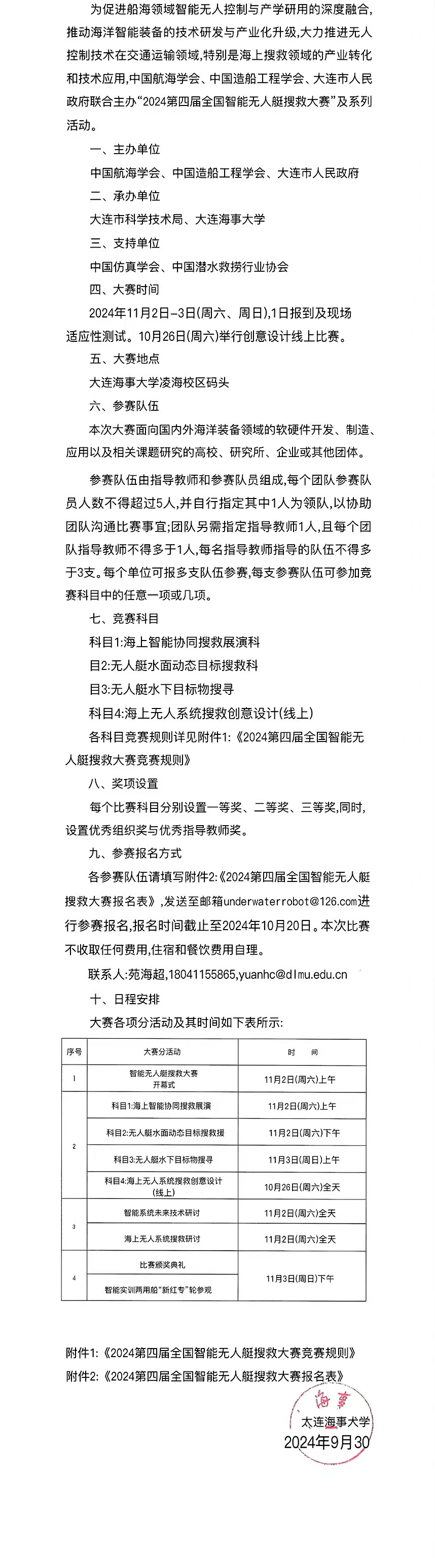 关于举办2024年第四届全国智能无人艇搜救大赛的预通知