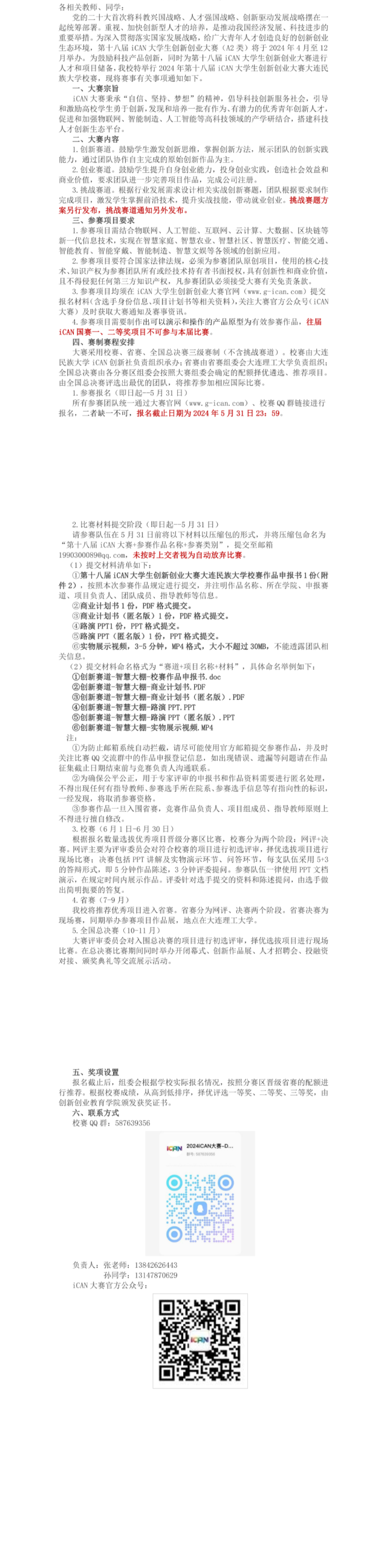 关于举办2024 年第十八届 iCAN 大学生创新创业大赛 欧冠官方网站校赛的通知