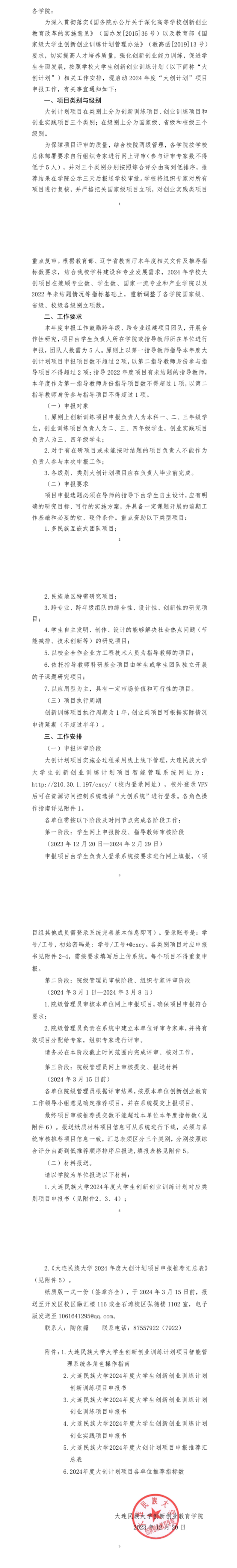 关于做好2024年度大学生创新创业训练计划项目申报工作的通知