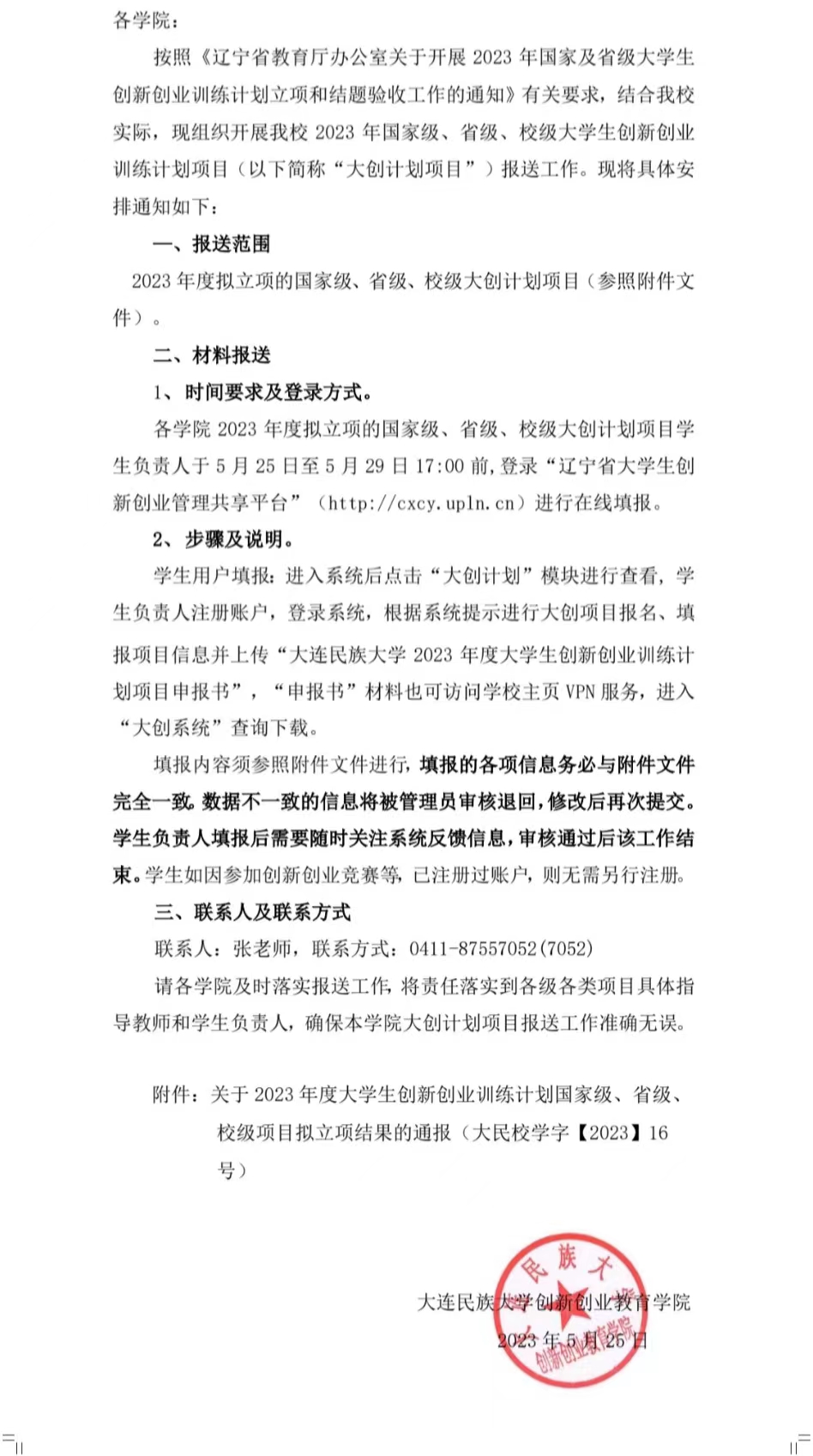 关于开展2023年大学生创新创业训练计划项目报送工作的通知
