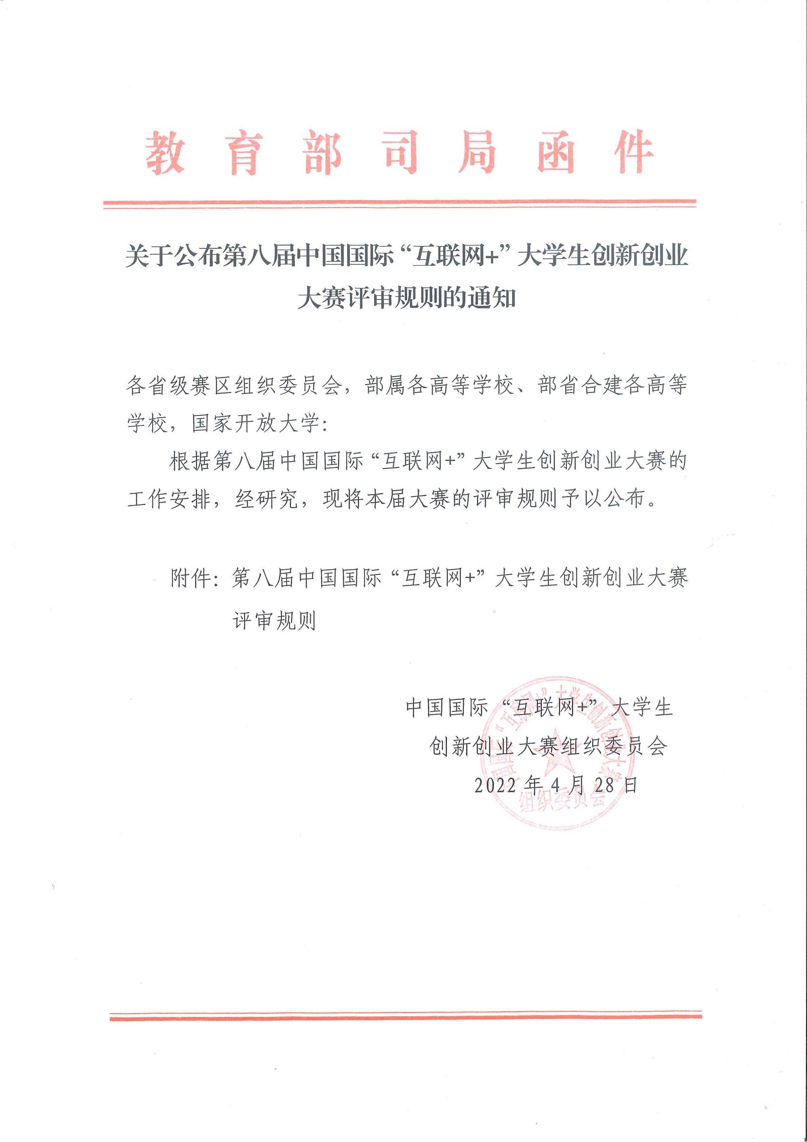 关于公布第八届中国国际“互联网+”大赛评审规则的通知