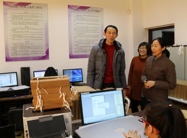 校领导十分重视档案工作,刘玉彬校长还来到档案数字化现场,看望辛苦加班的工作人员,听取宋江岩馆长的汇报。“来到现场后,能真切地感受到这项工作的数量和难度。在这么短时间内档案馆做了这么多,离不开大家兢兢业业、吃苦耐劳地努力。”在肯定档案馆的成绩时,刘校长鼓励大家,“档案数字化工作是功在当代、利在千秋的工作,对于档案的长久保存和利用都有十分重要的意义。大家还要加把劲,要继续提高师生档案意识,学校也会继续重视档案工作的发展,使欧冠档案工作上好台阶。” 在做好馆藏存量数字化的同时,增量档案实行年度数字化。梳理和总结两年来开展数字化的有效做法和遇到的问题,2018年把提高数字化准确率作为突破口,及时启动对历年馆藏档案数字化100%的复核工作,已完成2005年至2017年教学档案、党群行政档案、外事档案共186679条档案复核工作,启动基建图纸档案的扫描。年末昼夜加班,突击完成上报审计署各类档案的数字化工作。