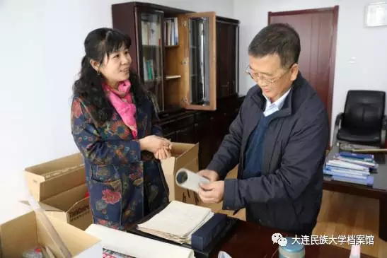 ▲张英福副校长向档案馆工作人员移交工作资料