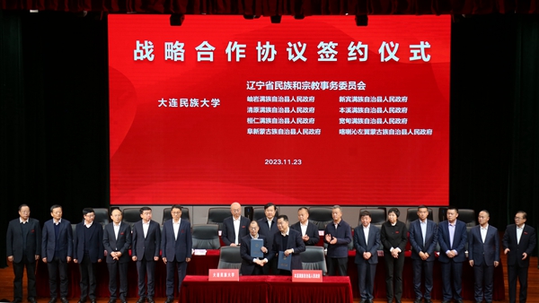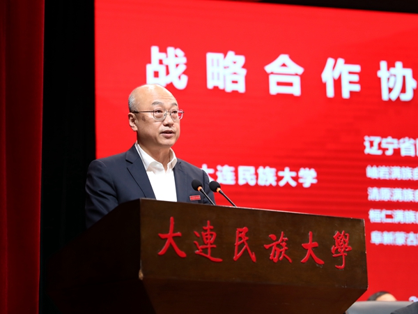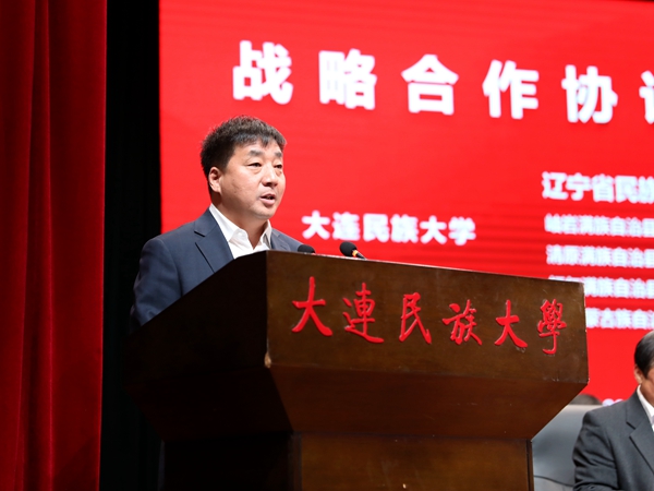 赵铸表示,此次签约是学校学习贯彻习近平总书记关于加强和改进民族工作的重要思想,贯彻落实国家民委党组部署要求的具体行动;是学习贯彻习近平总书记关于东北、辽宁振兴发展的重要讲话和指示精神,贯彻落实省委省政府和省委统战部部署要求的重要举措;更是学校建设高水平现代化综合大学的重要体现。作为建在辽宁、成长在辽宁的国家部属大学,学校肩负着服务党的民族工作,服务铸牢中华民族共同体意识,服务推动辽宁全面振兴新突破和各民族共同走向社会主义现代化的职责和使命。学校将以合作协议正式签订为新起点,坚持将学校教育、科技和人才优势与地方经济发展的产业资源充分结合、紧密合作,推动服务辽宁全面振兴新突破与学校高水平现代化综合大学建设双向促进、共同提升,在辽宁大地上书写出铸牢中华民族共同体意识、服务全面振兴新突破三年行动的精彩篇章。