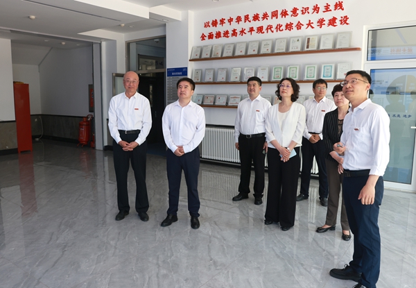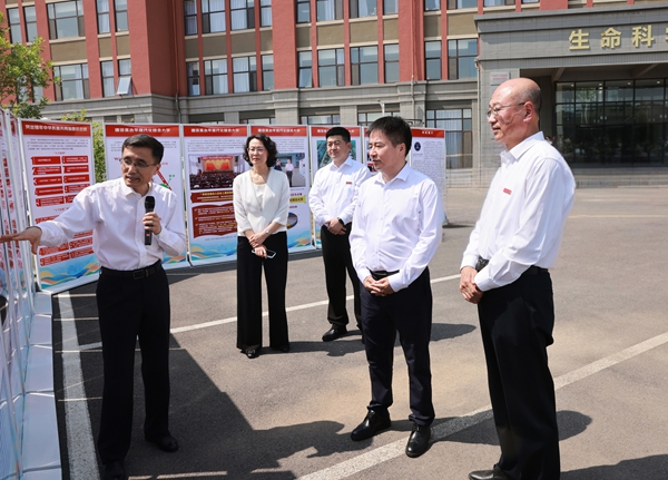 在校期间,全体与会人员参观学校整体情况介绍展板、生物技术与资源利用教育部重点实验室、物理与材料工程学院和设计学院教育教学成果展。