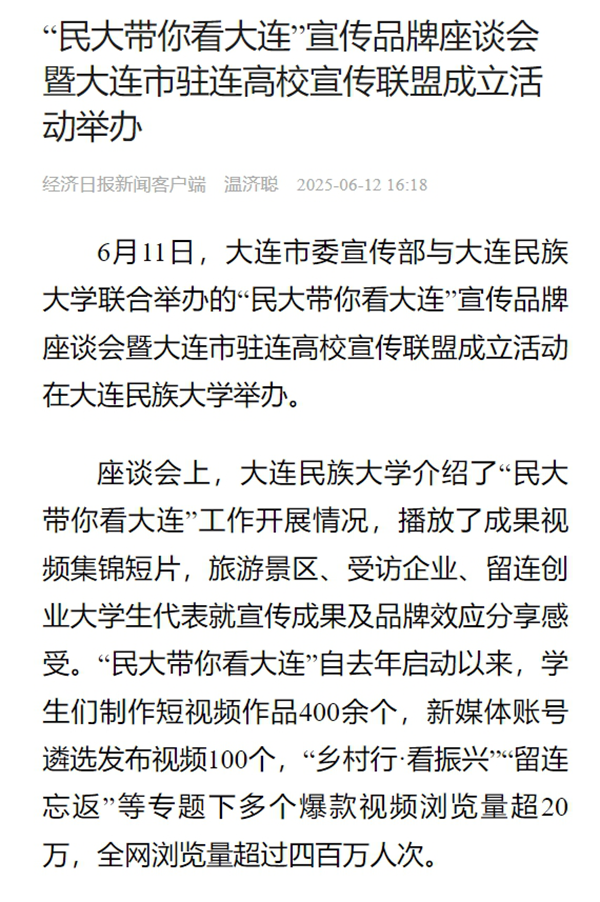 【经济日报】“民大带你看大连”宣传品牌座谈会暨大连市驻连高校宣传联盟成立活动举办