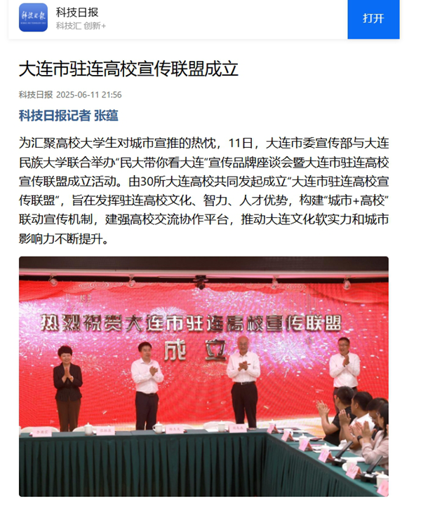 为汇聚高校大学生对城市宣推的热忱,11日,大连市委宣传部与欧冠官方网站联合举办“民大带你看大连”宣传品牌座谈会暨大连市驻连高校宣传联盟成立活动。由30所大连高校共同发起成立“大连市驻连高校宣传联盟”,旨在发挥驻连高校文化、智力、人才优势,构建“城市+高校”联动宣传机制,建强高校交流协作平台,推动大连文化软实力和城市影响力不断提升。
