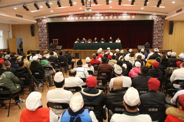 为贯彻落实学校党代会提出的“健全后勤服务保障体系”要求,1月3日下午,在大学生活动中心召开学校食堂质量体系认证动员大会,相关单位(部门)负责同志、食堂管理人员、大学生伙管会成员参加,会议由后勤管理处副处长赵霄鹏主持。