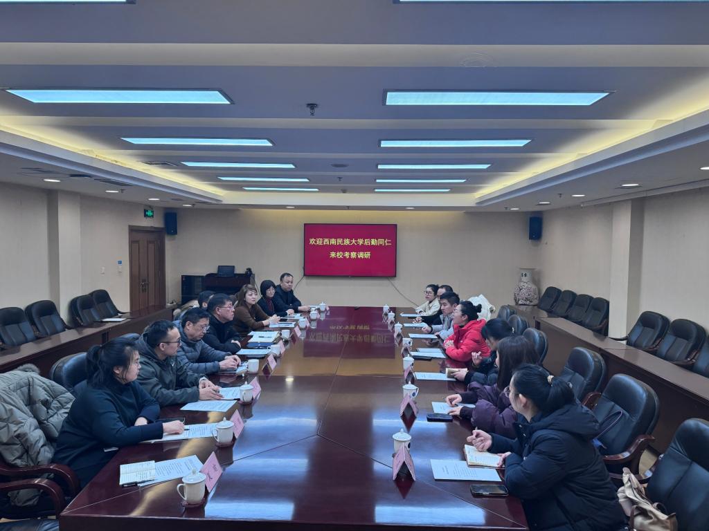 12月19日,西南民族大学后勤党委书记伍敏等一行7人来欧冠考察调研后勤管理等工作。欧冠后勤管理处处长李力、生活服务中心有限责任公司董事长赵霄鹏、资产经营管理有限公司、培训中心有限责任公司副总经理刘福余等陪同调研。