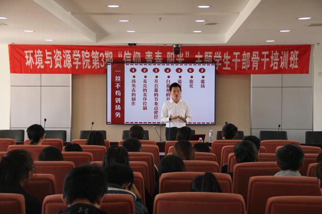 环境与资源学院高度重视青年学生的思想引领,已连续举办3期,“信仰•青春•阳光”学生干部骨干培训班,以贴近学生、贴近生活、贴近实际为原则,围绕“赤橙黄绿青蓝紫”七大篇章彩虹训练营,开展主题鲜明、内容突出、效果显著、形式多样的系列专题培训,力求全面提升学生干部骨干的能力水平,着力打造政治过硬、学习优秀、作风优良、自律严格的高素。