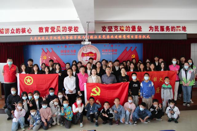 为推进学习贯彻习近平新时代中国特色社会主义思想主题教育高质量开展,深化“三全育人”综合改革,切实以党建带团建提升共青团实践育人实效,5月13日,环境与资源学院与金普新区大孤山街道富港社区举行党委共建雏鹰项目签约仪式。环境与资源学院党委书记崔玉波、党委副书记刘泽、学生工作办公室主任万博一、辅导员王思安,大孤山街道党建办主任崔晓琳、信息发展办主任苏静,学院全体学生党员及“石榴花开,籽籽同心”志愿服务先锋队中来自16个团支部的志愿者,社区工作人员、学生居民及其家长参与本次签约仪式。富港社区党委书记王鑫主持仪式。