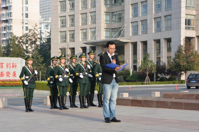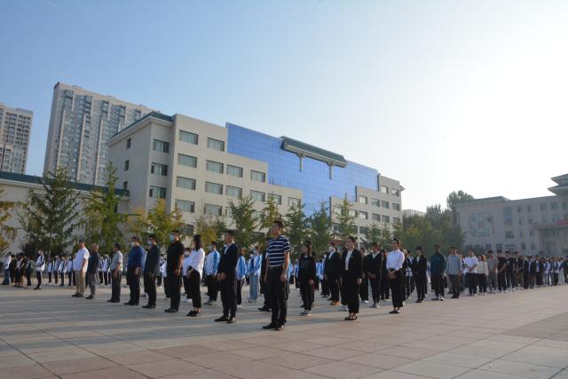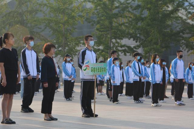 从9月18日的早晨秋高气爽、曙光初照, 学院领导、教师以及19、20级全体环资学子和早已统一院服,佩戴党徽、校徽,队列整齐地站立在国旗广场。