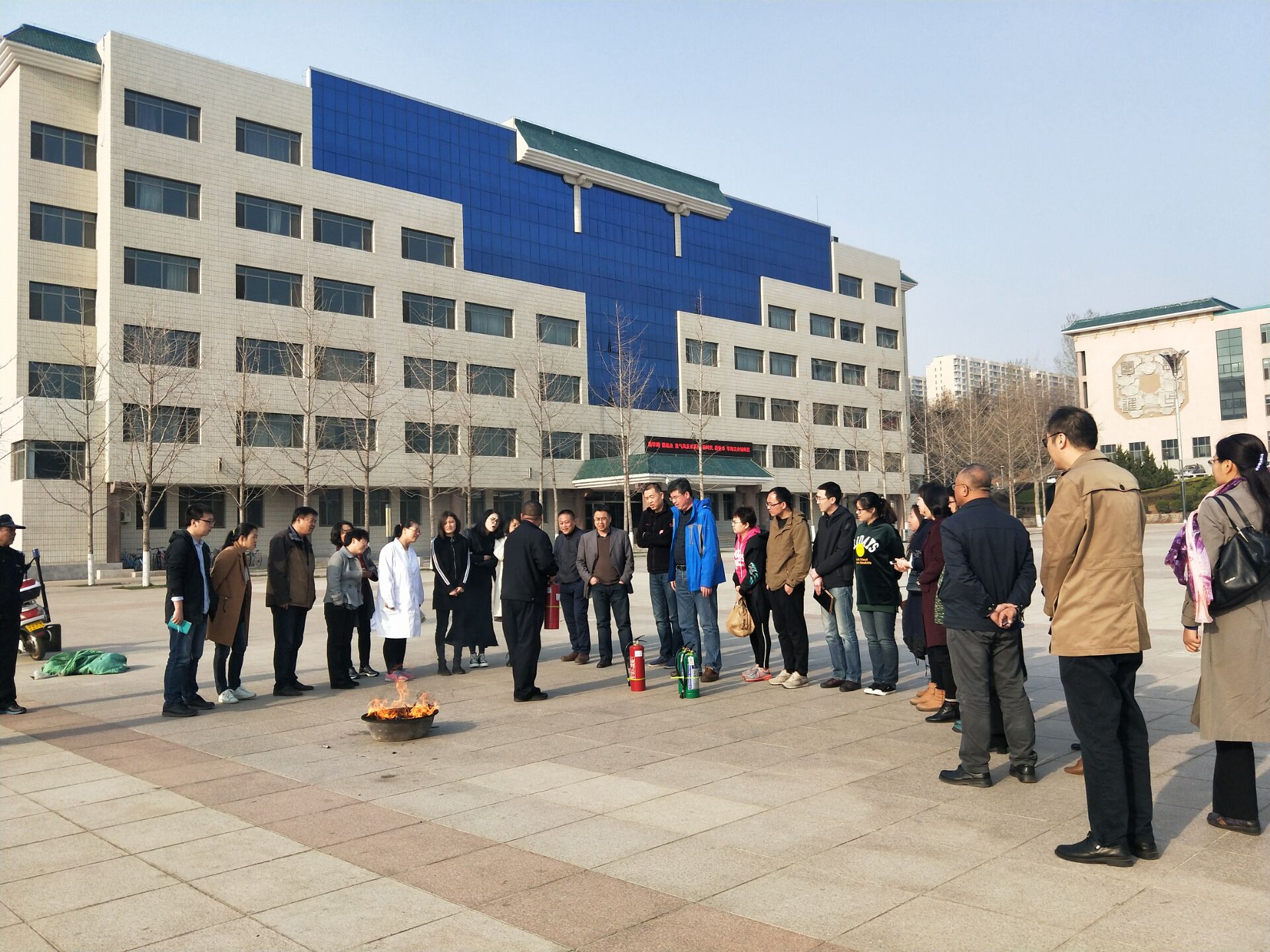 为将消防理论知识与实践紧密结合,会后,在保卫部老师的配合下,学院教师在广场上开展了以扑救初期火灾为主的演练活动。演练前,由保卫部老师讲解并示范干粉灭火器和水基灭火器的使用方法,引导、指导大家去使用灭火器扑灭火种,并对不足之处给予纠正。演练过程中,人员组织有序,灭火动作迅速有效。