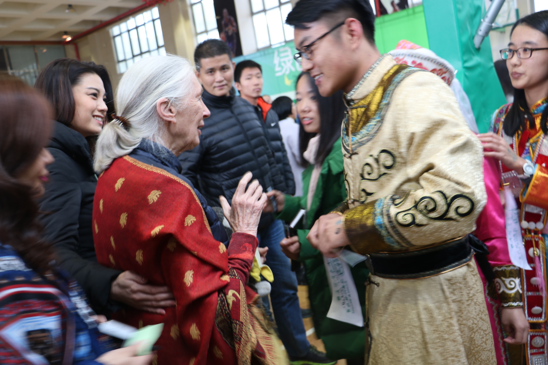 在此次峰会上,根与芽小组的创始人,世界最杰出野生动物学家、联合国和平大使、已经82岁高龄珍•古道尔博士也出席了本次峰会,并且为大家献上了一段精彩的演讲。除了为大家奉献一场精彩的报告,珍•古道尔博士还深入各个小组,与大家交流。尤其在看到身着民族服装的欧冠绿翼21-根与芽社团小组的同学展示和介绍后,珍博士十分赞赏,主动赠予我们签名并合影留念。分享交流时,欧冠用树叶制作的谜语,吸引来众多同学参与猜谜,自制的植物种子书签也深得同学青睐。