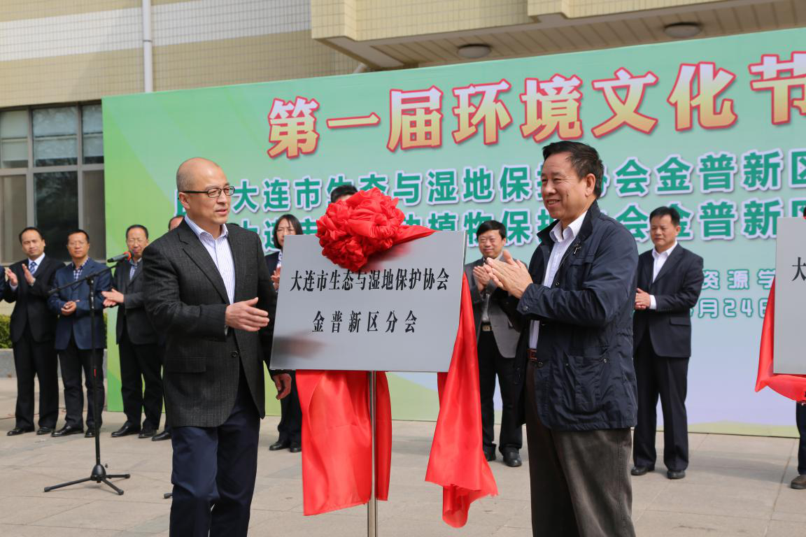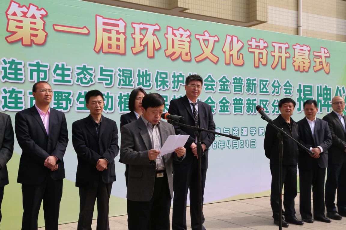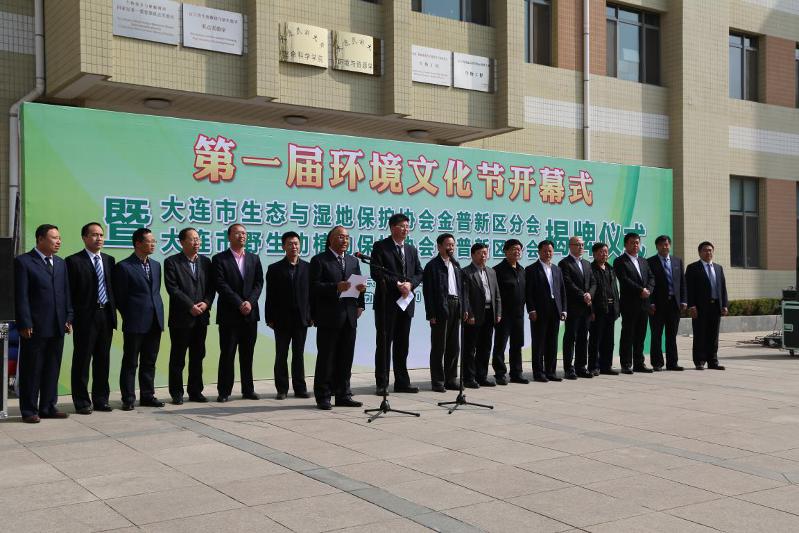 2015年4月24日上午,欧冠官方网站环境与资源学院首届“环境文化节”暨“大连市生态与湿地保护协会-金普新区分会”、“大连市野生动植物保护协会—金普新区分会”揭牌仪式于上午九点在生科楼前举行。原国家林业局野生动物保护与自然保护区管理司巡视员、现中国林业局中国野生动物保护协会副会长陈建伟,原国家林业局野生动物保护与自然保护区管理司副司长、现中国野生植物保护协会副会长刘亚文,原辽宁省林业厅森林公安局政委,现辽宁省野生动物保护协会秘书长周绍林,大连市野生动植物保护协会、大连市生态与湿地保护协会会长单联森,学校副校长段晓东、副校长陈明华及相关职能部门负责人,环境与资源学院领导班子成员、全体教师及学生代表参加了开幕式。环境与资源学院党总支书记李华戎主持开幕式。