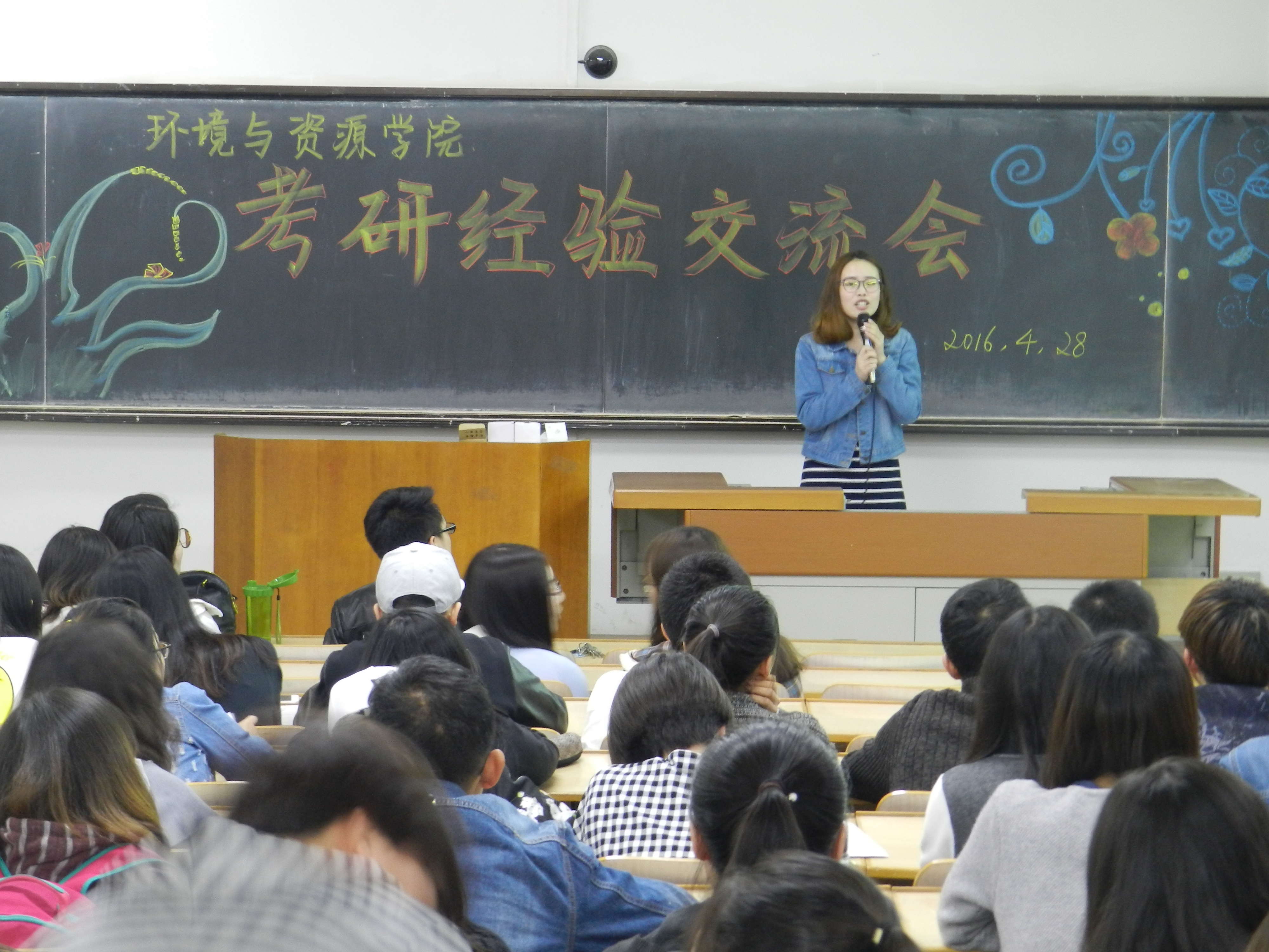 民大新闻网讯 4月28日晚,环境与资源学院举办考研经验交流会,邀请2012级四名考研成功的同学介绍考研复习的方法与技巧。环境与资源学院党总支书记李华戎、全体辅导员以及2014级、2013级部分有考研意向的学生参加了此次讲座。讲座由辅导员汪发余主持。