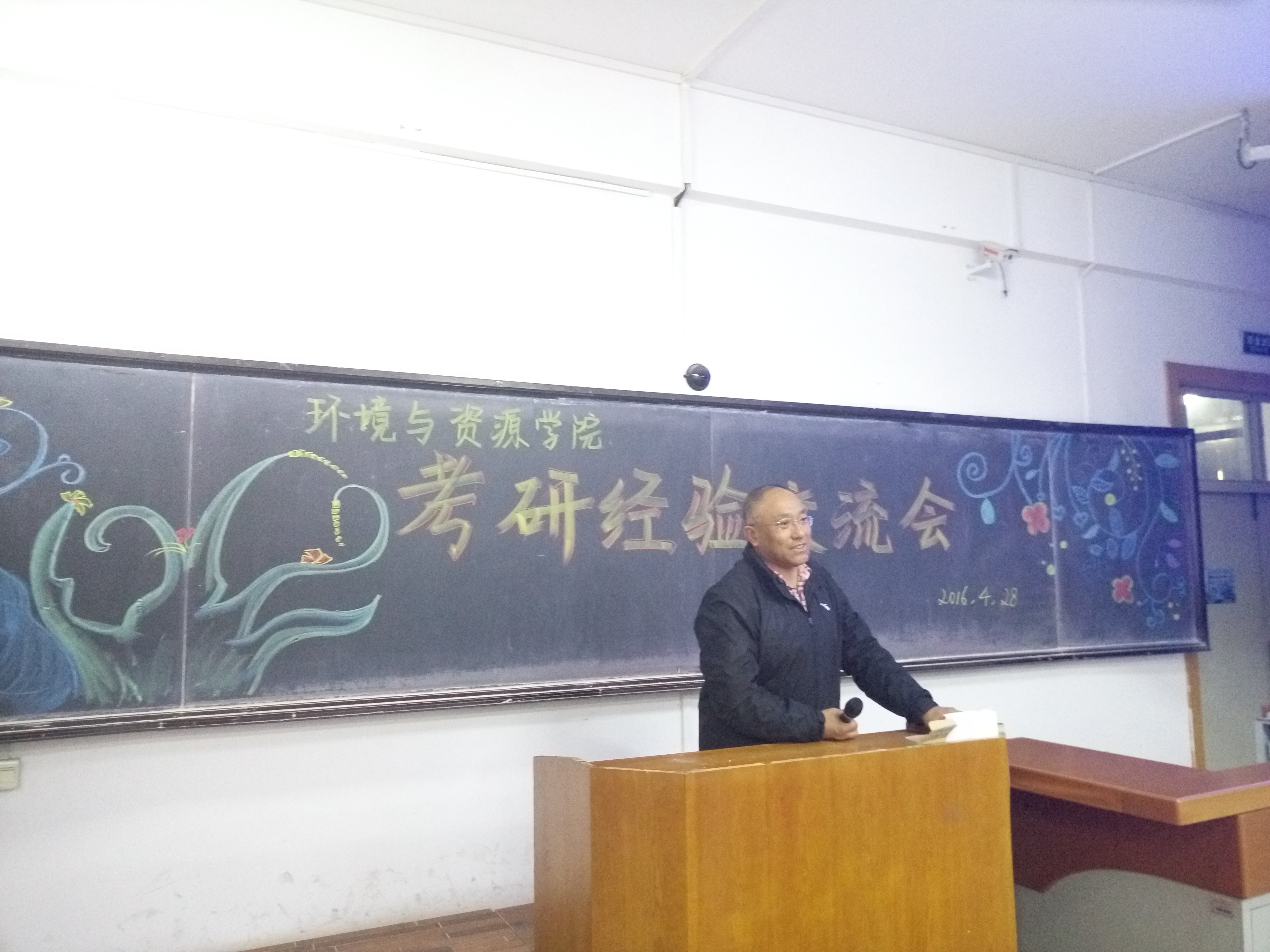 环境与资源学院党总支书记李华戎首先代表学院向2012级成功考取研究生的同学们表示热烈地祝贺。他指出,四名同学准备充分,从不同角度为备考学生提点迷津,指明方向,希望备考学生一方面争取尽早确立考研方向,制定合理的考研复习计划;另一方面应根据自身实际情况选择报考院校,切记好高骛远;最后,希望备考学生积极调整心态,朝着考研目标坚定走下去。