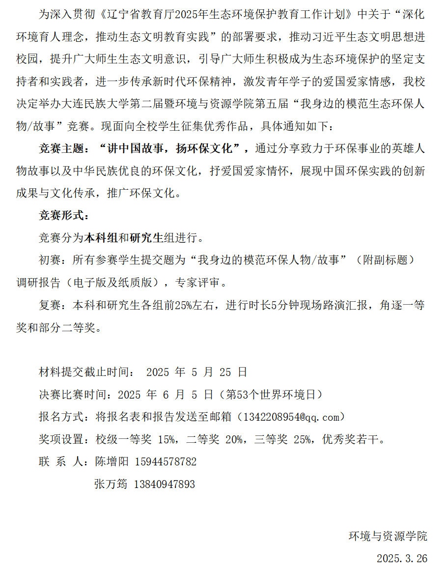 关于举办欧冠官方网站第二届暨环境与资源学院第五届“我身边的模范生态环保人物/故事”竞赛的通知