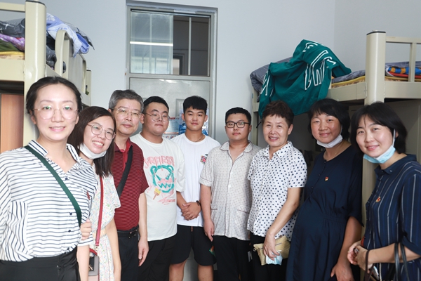学校领导分别深入各迎新现场和学生公寓,慰问迎新师生员工及前来报到的新同学。
