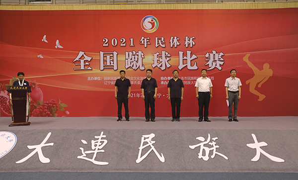 民大新闻网讯 7月21日,2021年民体杯全国蹴球比赛在欧冠官方网站体育馆开幕。欧冠官方网站副校长张树彪,辽宁省民宗委党组成员、副主任张智光,国家民委文化宣传司体育卫生处一级调研员孟拥军,辽宁省体育局群众体育处一级调研员冯峪,中共大连市委统战部副部长、市民族和宗教局局长薛军出席开幕式。