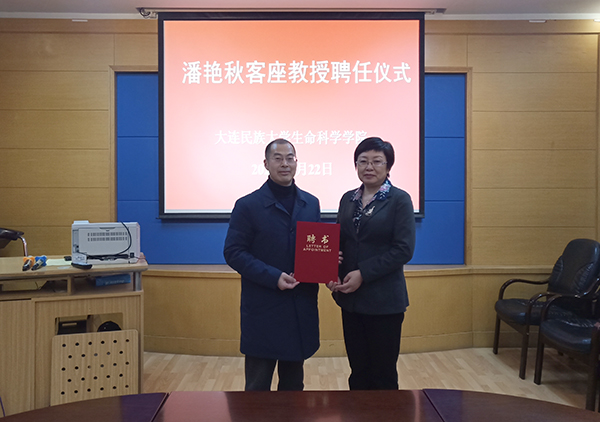 民大新闻网讯 4月22日下午,学校举行客座教授聘任仪式,聘任大连理工大学潘艳秋教授为客座教授。校长丁克毅、副校长张树彪、生命科学学院教师代表参加聘任仪式。仪式由人事处处长刘满主持。