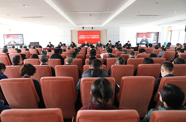 赵铸强调,要切实抓好学校工作的重点任务和基本要求,推动建设高质量教育体系开好局、起好步。要认真抓好全面从严治党、意识形态和思想政治工作、综合改革升级版“三项重点工作”,以及学科专业布局与建设、本科生和研究生教育工作、校园布局优化与功能完善升级版“三件大事”。要把党史学习教育、铸牢中华民族共同体意识、防范化解重大风险隐患和常态化疫情防控工作贯穿始终。