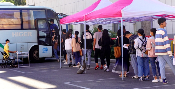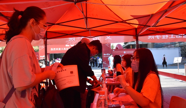 为保障新生顺利入校,天刚刚亮,几批学生志愿者们分别奔赴大连机场、大连火车站、大连北站和大连港,迎接新生及家长。民大校园内的学生志愿者们也坚守各自岗位,为新生入校提供服务保障。文法学院汉语言国际教育专业满族学生赵薇是一名大一新生,在进行短暂的休息整理后,她报名成为了一名迎新志愿者。“一到学校学长学姐就上前接过了行李,充分感受到了学校的热情,仿佛回到了大家庭一样温暖。作为新生,我更能感受到新生与家人分离的不舍和遥远奔波的疲惫,所以想尽自己所能去帮助到他们,把这种温暖传递给更多的人。”