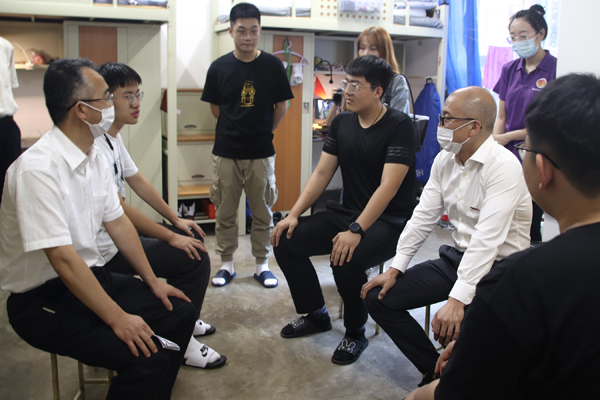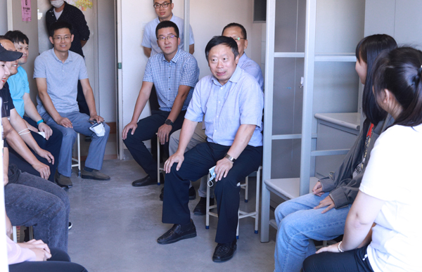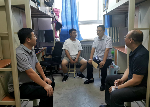 在走访过程中,党委常委、校领导与学生们亲切交谈、嘘寒问暖,关心关怀他们的身体和生活情况,切实了解新生进校后对学习饮食、住宿、学习环境等的情况,并对新生疑问进行详尽解答。勉励同学们尽快适应大学生活,合理安排时间,树立明确目标,提前做好学业规划,勤奋学习,争做“学在民大”的践行者。叮嘱同学们按照学校疫情防控要求,做好个人防护,强化安全意识和自我保护意识,希望同学们都能在这里度过愉快而美好的大学时光。