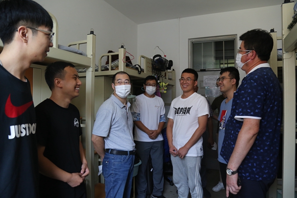 按照学校党委统一安排部署,党委常委、校领导分别于近日深入两校区学生宿舍,看望慰问返校学生。