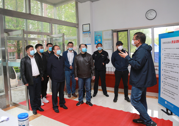 在校期间,督导组一行实地考察了学校疫情防控物资储备、校门管控、师生就餐、隔离区设置、医疗保障等情况。
