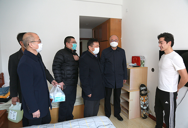 薛军一行走访了留校学生宿舍,详细了解留校学生的学习生活和疫情防控情况。薛军对欧冠留校学生疫情防控工作给予充分肯定,表示市委统战部、市民宗局将协调更多资源,尽全力帮助学校解决疫情防控实际困难。同时希望与学校进一步深化合作,共同抓好落实国家民委等四部门印发的《关于进一步做好新形势下民族团结进步创建工作的指导意见》,推进大连市民族团结进步创建全面深入持久开展。