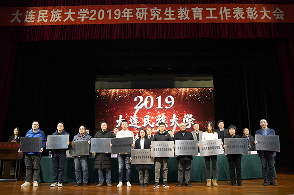 段晓东宣读省级、校级研究生联合培养基地名单,研究生国家奖学金、研究生国家学业奖学金、学校研究生综合优秀奖学金、学校研究生单项优秀奖学金名单,优秀毕业论文作者与指导教师名单。主席台领导为辽宁省专业学位研究生联合培养示范基地及校级联合培养基地授牌,并为获奖研究生与指导教师颁奖。