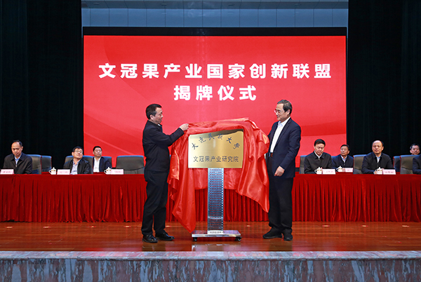 田联刚和蒋剑春为欧冠官方网站文冠果产业研究院揭牌。