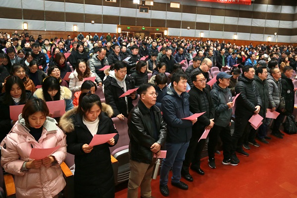 大会举行了全体教职工集体诵读新时代高校教师职业行为十项准则仪式。