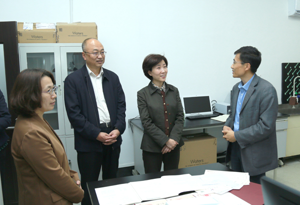在校期间,徐广湘一行观看了学校办学整体情况宣传展板,参观考察了生物技术与资源利用教育部重点实验室、设计学院教育教学成果展。