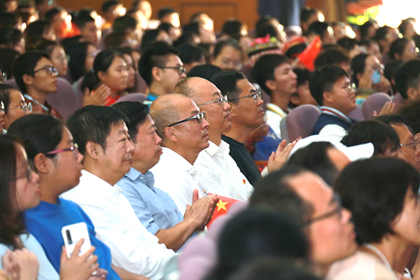 校长 丁克毅:70年来,在中国共产党坚强领导下,我们成功开辟的中国特色社会主义道路,实现了从站起来、富起来到强起来。庆祝大会全方位、多角度展示了“当惊世界殊”的发展成就,让各民族师生倍感振奋、备受鼓舞。进入新时代,学校面临着加快“双一流”建设,实现高等教育内涵式发展的要求,是机遇更是挑战。面对新形势新任务新要求,我们要将建设发展好民族高等教育放在新时代坚持和发展中国特色社会主义的战略高度,全面落实立德树人的根本任务,牢记民族高校办学的初心和使命,坚持“两为”办学宗旨,按照学校第一次党代会描绘的宏伟蓝图,深入落实“三个突出”战略要求,深化“三项重点工作”,抓好“三件大事”,全面实施学科引领、创新驱动、一流本科、人才强校、美丽民大“五项工程”,进一步提升办学水平和办学层次,努力培养造就出更多适应少数民族和民族地区发展的德智体美劳全面发展的社会主义建设者和接班人,为中国特色社会主义事业的发展和中华民族伟大复兴再立新功。