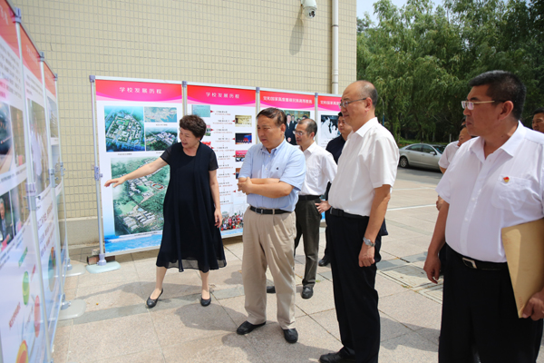 在校期间,王启尧一行观看了学校办学情况展板,考察了生物技术与资源利用教育部重点实验室、设计学院教育教学成果展。