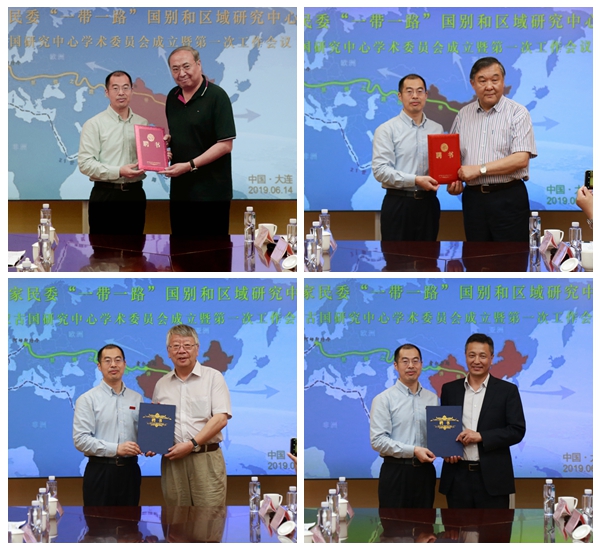 丁克毅校长代表学校分别向“蒙古国研究中心”顾问朝戈金研究员、齐木德道尔吉教授,“蒙古国研究中心”学术委员会主任郝时远研究员、副主任黑龙教授以及7名学术委员颁发了聘书。郝时远研究员和齐木德道尔吉教授为蒙古国研究中心23名专兼职研究员颁发了聘书。
